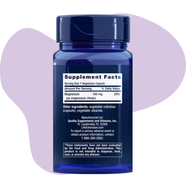 El magnesio es un mineral importante para tu salud, ya que es necesario para más de 300 reacciones bioquímicas. Sin embargo, muchas personas no obtienen suficiente magnesio en su dieta. Nuestro suplemento de Citrato de magnesio proporciona 100 mg en cada cápsula vegetariana.